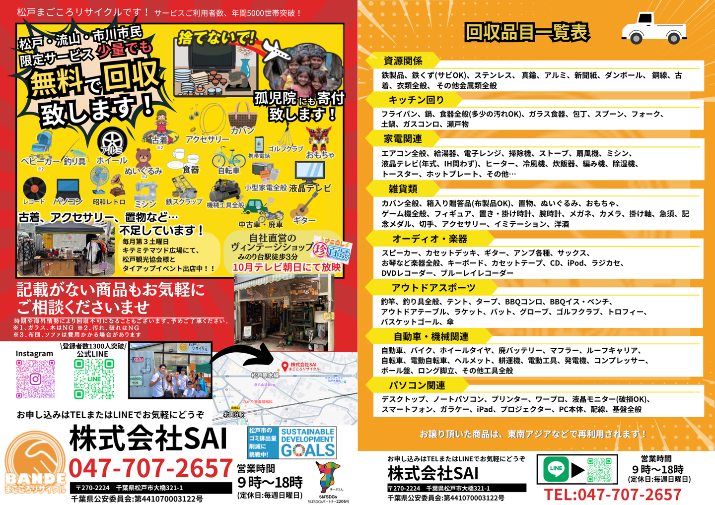 \ ご自宅の前に置くだけ!手間ゼロの無料回収サービス / 「これも出せるの?」そんな驚きの声、続出中。松戸市で不用品を処分したい方へ。服1袋からOK!「これくらいじゃ悪いかな…」なんて遠慮は一切無用です。 まずはお問い合わせください!